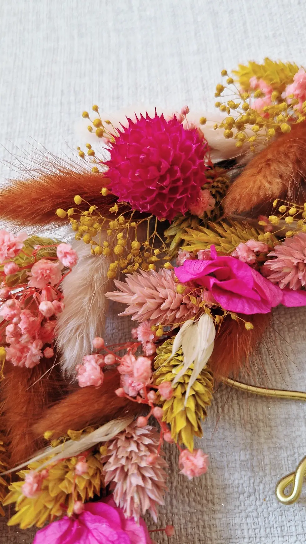 Couronne "Just Married" terracotta moutarde rose fushia diamètre 30cm